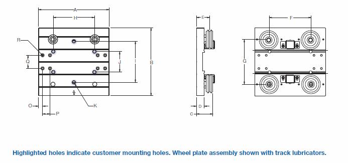 N/A There are two choices for wheel plate assemblies - wiper wheel plates and basic wheel plates. Wiper wheel plates are available with your choice of DualVee guide wheels and provide the lowest height solution. Basic wheel plates are the more economical choice and come with Integral DualVee wheels and your choice of either lubricators or wheel covers. Both the wiper wheel plate and the basic wheel plate are intended to run on track plate assemblies. |