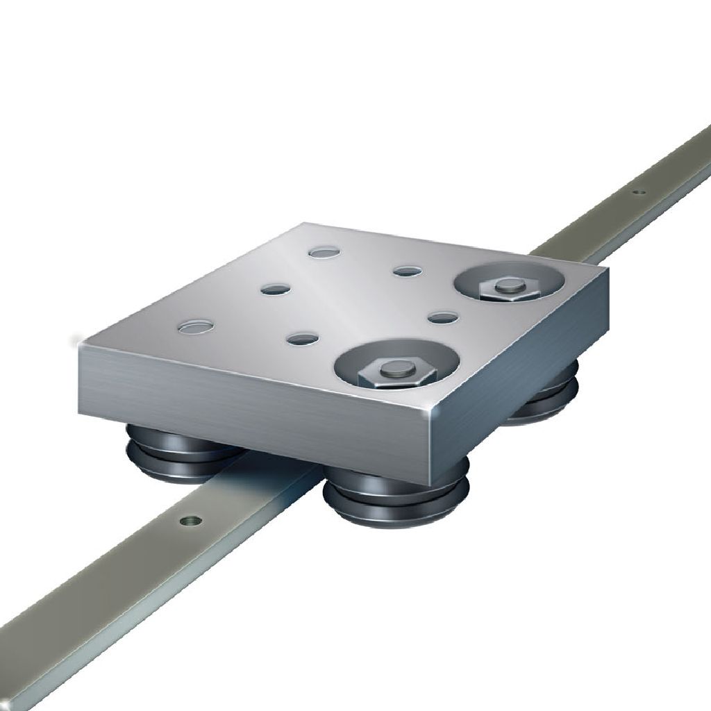 MinVee® tracks feature a self-aligning mounting shoulder, reducing installation time and cost. Stainless steel stand-offs and an aluminum spacer for mounting track are also available. Miniature Linear Slides with New Track Support For easier application integration, a new track support is now available for MinVee® Miniature Linear Slides. This aluminum beam that securely joins steel track to mounting substrates, and is a cost-effective mounting alternative that provides faster installation and inherently parallel mounting surfaces. Linear Slides Track Options MinVee® linear slides are available with 1045 carbon steel track, hardened (Rc 53 Min), or unhardened (Rc 22-25), drilled or undrilled. Choose from a variety of standard lengths or request a custom length. Single length pieces up to 18 feet hardened or 20 feet unhardened are available, and can be easily connected to create a longer length linear slide. Custom plating options include black oxide, electroless and nickel. |